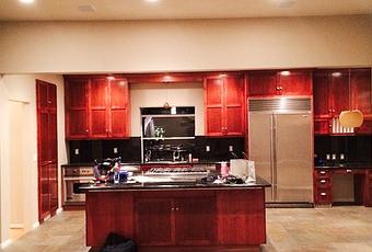 La cocina de hoy seguro que a más de uno os resulta familiar, ¿verdad? Las puertas tipo cerezo, la bancada negra de granito, ese ambiente entre clásico y rústico a la vez que tan de moda estaba hace 30 años, etc. ¡Pues vais a alucinar con el cambio! Vamos, es que sin cambiar nada de la distribución, parece otro espacio totalmente diferente.