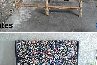 A juego con mis sillas flamencas he restaurado un MUY VIEJO sofa de bambú del porche... El pobrecito estaba echo polvo, yo siempre lo he visto así, sin almohadones a medida, siempre se han usado unas colchonetas de tumbonas cortadas, todo desgastado por estar a la intemperie (en el porche)… y claro, al estar en un sitio taaaaan visible, decidí hacerle una lavada de cara.