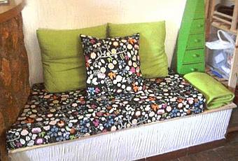 Con la tela y la espuma que me sobró, me animé a tapar el hueco del leñero, al lado de la chimenea, para ello antes le corté una madera a medida, a la que le puse unas visagras para poder tener acceso más o menos fácil al hueco interior, la madera me costó unos 12€, las visagras 3-4€ cada una (puse 2) y la espuma y la tela sobraron del sofá… Así me quedó.