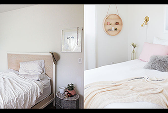 Se trata de un dormitorio, intuimos que de una chica, por sus colores pastel y porque es el tono rosa el que predomina en la mayor parte de la decoración. Junto con una mezcla de textiles neutros y mobiliario de líneas sencillas en maderas claras, este dormitorio es un claro ejemplo de que no hace falta una gran inversión para darle un aire nuevo y renovado a cualquier habitación.