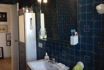 A continuación veréis las baldosas del antiguo baño, azul fuerte brillante, con ese estampado tan ‘bonito’… pero dos manos de pintura más tarde es otra habitación. De repente la luz se ha adueñado de ella y parece el doble de grande. Antes no apetecía darse un baño relajante entre esas paredes opresoras, ahora uno no saldría de allí.