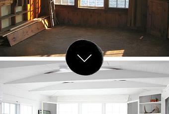 Para el cambio de la estancia de hoy, se ha optado por pintar el revestimiento de madera en techo, paredes y suelo de color blanco una decisión fundamental para ganar luz y aumentar visualmente el espacio, el cambio en la distribución, situando la cama frente a la ventana, también ha sido muy importante para ganar unos metros extra y poder ubicar una zona de lectura junto al precioso ventanal.