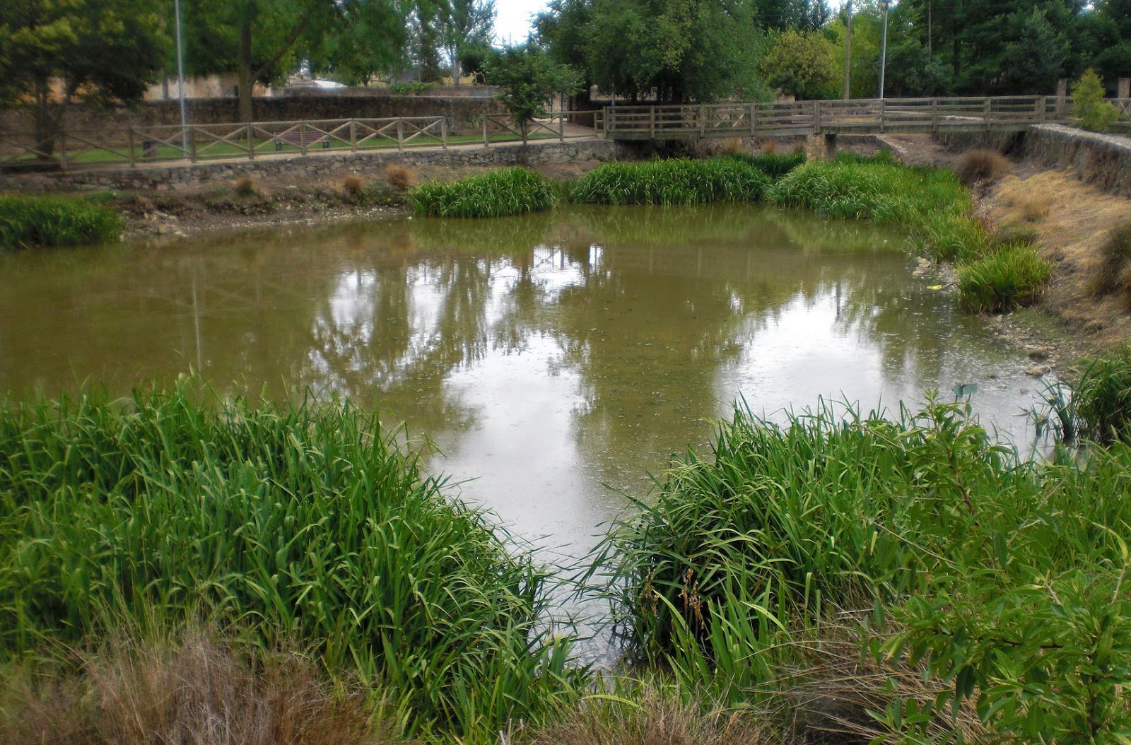 Arriba y abajo: la Fuente del Rey, más conocida popularmente como El Marco, se presenta como el manantial de drenaje natural más importante de El Calerizo, con una capacidad original de hasta 95 l/sg. que la convertían en una inagotable fuente acuífera para los vecinos, cercándose sus límites por orden de los Reyes Católicos, en 1.501, para protección de la potabilidad de sus aguas a través de un muro de mampostería, restaurado recientemente junto a los entornos de la fuente, convertido en parque de la ciudad.