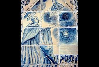 San Alonso de Orozco fundador del convento representado en azulejería talaverana hoy en el actual colegio de las agustinas