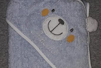 A una graciosa y simpática toalla de osito le añades el nombre del bebé y se convierte en una toalla única y especial.