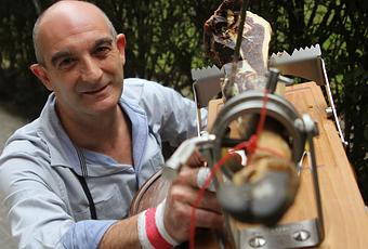Antonio y un jamón ya cortado, cortado en una foto de Fran Lorente.