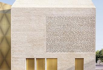 Sus volúmenes se crean de acuerdo a rigurosas plantillas, luego se afirma visualmente para respetar el principio de simetría y asumirlo plenamente. El edificio está dividido en dos volúmenes distintos: uno de ladrillo y otro de metal ámbar, cada uno de los cuales desempeña un papel específico tanto en lo que respecta al espacio público como al funcionamiento interno.