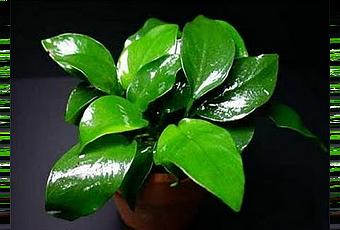 Distribución por África occidental.La especie nana es una de las especies mas resistentes, el rizoma esduro y grueso, es una de las variedades más comunes y pequeñas, las hojas son ovaladas de 3 a 5 cm de ancho, color verde claro por principio y verde oscuro brillante al madurar. La altura rara vez sobrepasa los 15 cm. Se recomienda entrelazar o enroscar el rizoma para que la planta se compacte y forme colonias de hojas.