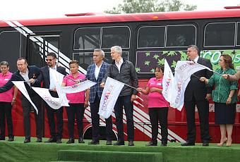 En el banderazo de salida de 95 unidades ecológicas de transporte público, con equipo de seguridad y que operarán en municipios de la Región de las Pirámides, el mandatario estatal aseguró que esta profesionalización, dirigida a conductoras y conductores, permitirá continuar mejorando al sector, al tiempo de dar mayor certeza a las personas que utilizan este medio para trasladarse.