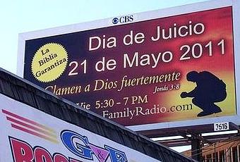 En letras grandes, anuncios dispersos por todo el mundo lanzan un mismo mensaje: “Día del Juicio, 21 de mayo, 2011. La Biblia lo garantiza. Clamen a Dios fuertemente”.