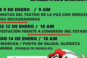La primera manifestación fue programada para el día lunes 9 de enero a las 9 am en las escalinatas del Teatro de la Paz, la cual tendrá como destino las Oficinas Recaudadoras.