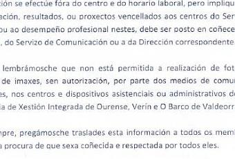 A cousa arranca desta carta escrita pola xerente de xestión integrada de Ourense, Verín e Valdeorras: