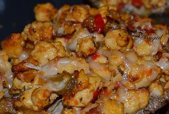 El Apagallum como los llamamos aquí o quizás las conoceréis mas por este nombre paloma o por su nombre científico Macrolepiota procera, es una seta catalogada como comestible excelente, ademas es de las mas grandes por el tamaño de su sombrero y por eso me gusta para prepararlos rellenos también lo hice con esta receta apagallums rellenos de carne gratinados al horno o como ya os enseñe en otra ocasión en pizza, aquí tenéis la receta por si queréis prepararla pizza de apagallums . Por cierto a ti te gustan las setas? quieres que publique mas recetas con ellas? me gustaría saberlo.Bueno vamos con la receta.Ingredientes:Doce apagallumsTres pechugas de polloUna cebollaUn pimiento rojoUna berenjenaTres tomatesAceite de oliva virgenSal PimientaPerejil secoHierbas provenzales secasQueso curado rallado