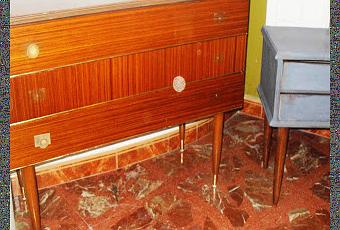 Aquí tenéis otra vista del detalle de los cajones. La madera bonita la barnicé y quedó estupenta. El fondo que como ya he dicho es marquetería queda disimulado con el papel y el conjunto resultón.