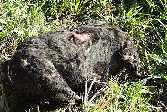 Impactado por aquella primera visión, decidí acercarme muy despacio. Pronto empecé a percibir un fuerte y desagradable olor a putrefacción. Una nube de moscar verdes y azules revoloteaban alrededor de los despojos. La imagen era dantesca. Los cortes limpios, casi quirúrgicos, producidos inequívocamente por alguna herramienta cortante. No sólo la cabeza había sido cercenada. También las extremidades... Jirones secos de piel y pelo desprendidos del lomo y las patas me llevaron a sospechar que la pobre criatura había podido ser arrastrada a lo largo de varios metros. Lo único seguro es que no se trataba de una muerte reciente.