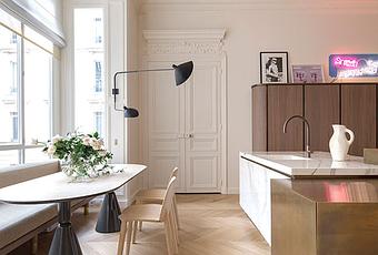 Buenos días! Comenzamos este sábado con un apartamento en París de techos altísimos, muchas molduras restauradas y suelo en espiga (algo tienen los suelos de espiga parisinos que son especialmente bonitos). Espacios amplios y habitaciones con mucho encanto y personalidad.Mezcla perfecta entre lo moderno y lo antiguo. Me gusta especialmente cómo han sabido mezclar materiales que en principio no "pegan" nada entre sí. También la combinación de mobiliario enriquece mucho el aspecto final de la vivienda, no os parece??