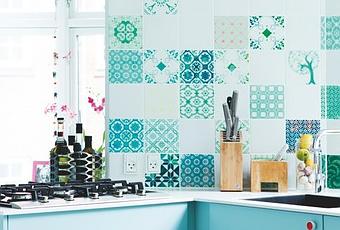 El turquesa, verde agua, azul claro... el "mint" en todas sus gamas está de moda. Esta cocina con sus azulejos en "patchwork" me ha enamorado, pequeña, funcional, luminosa, alegre, sencilla y a su vez súper chic y moderna ¿No os parece?
