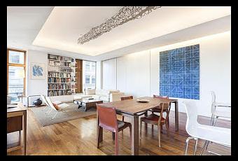 Hoy detrás de la puerta de este apartamento situado el en Soho. Con una distribución abierta y mucha luz natural. Resaltar la enorme escultura de alambre trenzado que cuelga del techo del salón. En la habitación principal se forra con fieltro de color chocolate la zona del cabecero, completando la decoración con una pequeña cómoda antigua y la silla de diseño. Fotos: One Fine Stay
