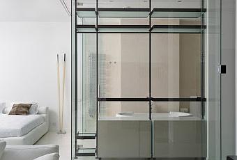 El apartamento se distingue por los efectos de iluminacion y el color blanco casi total del diseno interior, sin embargo, el diseno no luce frio, sino que es armonico y contemporaneo