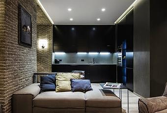 Apartamento moderno y minimalista con toques tradicionales de mamposteria, ubicado en Kiev, Ucrania.