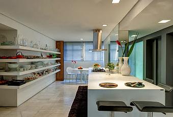El diseno se desarrolla en solo 150 metros cuadrados, todo en tonos claros, que visualmente amplia los ambientes, los interiores son amplios y abiertos, con los minimos muros, para integrar areas funcionales.