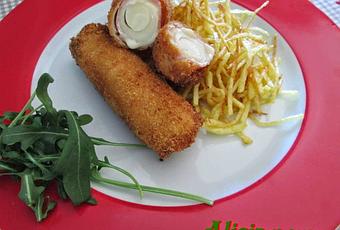 Enrollamos y pasamos por huevo batido y pan rallado, volvemos a pasar por huevo y por pan rallado.