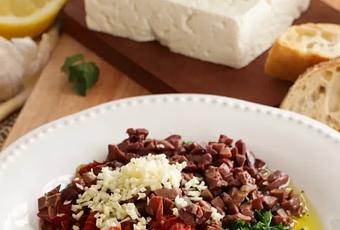 Este aperitivo fácil reúne todos los sabores del mediterráneo con un Queso Feta que es imposible que pase desapercibido, aceitunas negras, ajo, tomates secos y un delicioso aceite de oliva que no puede faltar.