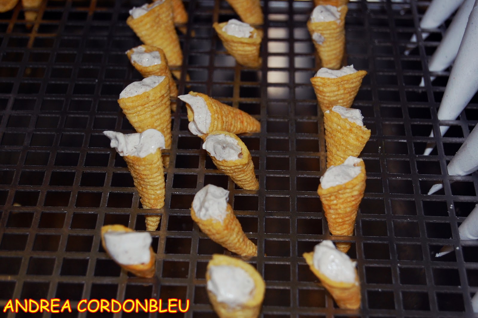 Se hace una mezcla homogénea con el queso y el condimento, en este caso el Ras el Hanout. Se rellenan los aperitivos 3D.Se sirven en una bandeja o pinchados en algún recipiente.