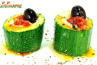 Paso 1. Lavamos bien los calabacines, cortamos los extremos de los mismos y los desechamos. A continuación, cortamos los calabacines en tres o cuatro trozos (en función del tamaño del calabacín). Cada aperitivo medirá unos 4 centímetros de alto. Con ayuda de un cuchillo vaciamos el calabacín haciendo un agujero en el mismo sin llegar al otro extremo para que los ingredientes permanezcan dentro del calabacín.