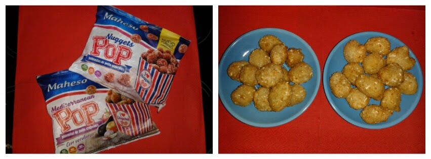 Un nuevo snack sobre la mesa, palomitas crujientes de pollo. Se pueden preparar en freidora, sartén, horno o microondas. Yo hoy, lo preparé todo en horno, ya que había prisa por el partido.Tanta prisa para luego ese 6-1...pero bueno, lo importante era que la cena estuvo muy rica y la disfrutamos en familia.