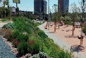 En este nuevo parque, el espacio reservado para la naturaleza se ha incrementado al reducir la superficie pavimentada, creando espacios con condiciones óptimas para el crecimiento de diferentes tipos de especies vegetales. A las que se le suma también la creación de un prado mediterráneo de 500 metros cuadrados con una selección de especies adaptadas a las precipitaciones de la zona.