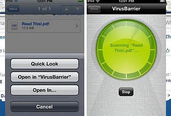 VirusBarrier analiza archivos para detectar y eliminar malware tanto del entorno Mac como Windows (PDF, Microsoft Office, Javascript y ejecutables). Este software es compatible con iOS 4 o superior, está disponible en la App Store y su precio es 2,99 dólares.