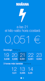Esta simple aplicación le informa de forma concisa sin mas detalles del precio €/kWh al que paga la luz en el momento de consumirla, y de cuál es la mejor hora para utilizar aquellos electrodomésticos que mayor consumo energético tienen, reduciendo así tu recibo de la luz.
