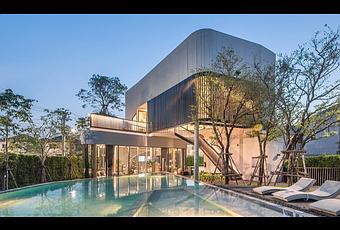 V-Compound de AplusCon Architects. La iluminación natural de Engage es la idea central del V-Compound, la casa club de la aldea en Rajchapherk-Pinklao, Nonthaburi. La apariencia del edificio está inspirada en las hojas sobrepuestas.