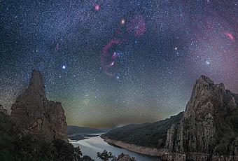 Es el cielo oscuro invernal sobre el Parque Nacional de Monfragüe, aquí en España.