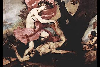 La estancia italiana del pintor es fundamental para comprender su estilo y su desarrollo estético. Riberase establece en Nápoles habiendo asimilado a la perfección los postulados de Caravaggio respecto a la concepción naturalista de la pintura con especial atención a los efectos del claroscuro propios del tenebrismo. Ribera se convierte en el pintor de los santos y los mártires de pieles ajadas y colgantes, de los rostros cansados y marcados por la edad, de los tipos realistas que debían recorrer las calles de Nápoles durante esos momentos iniciales del seiscientos. A partir de la década de los treinta, cuando la pintura italiana inicia un exultante giro en el que empieza a tener cabida una nueva concepción triunfal del arte, Ribera se va despojando de su carácter tenebrista para ir asimilando el color y la luz victoriosa que el nuevo catolicismo postridentino postula. Apolo y Marsias, pintado en 1637 y del que existen varias versiones, podría considerarse un cuadro donde encontramos los dos momentos básicos de la pintura de Ribera: el naturalismo de su primera etapa, con esos fuertes claroscuros, centrado en el atormentado personaje de Marsias, frente a esa nueva luminosidad que se abre a partir de la década de los años treinta, con ciertos tintes del clasicismo que imperaba en la pintura italiana del momento.El cuadro trata el momento en que Apolo comienza a desollar al imprudente sátiro Marsias, que había osado desafiar al dios en una competición musical sin imaginar cuál iba a ser el cruel y atroz castigo por atreverse, siquiera, a cuestionar la pericia del ser divino con los instrumentos musicales.