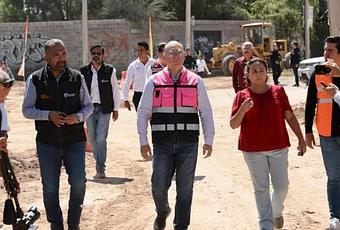 Durante un recorrido de supervisión en la colonia Plan Ponciano Arriaga, el Presidente Municipal constató el avance de la instalación de redes de agua potable y drenaje en las calles Melchor Ocampo y Tecnológico, trabajos que estarán concluidos a finales de noviembre. Se trata de vialidades que nunca antes habían contado con estos servicios esenciales.