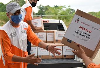 Distribuye alimentos, cobijas y kits de bioseguridad e higiene a familias afectadas por las inundaciones, desborde de ríos y presas, en coordinación con World Vision y Santander México. Han resultado beneficiadas 20 mil personas hasta el momento