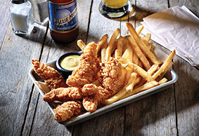 Mientras que en los platos principales, tenemos a elegir 6 posibilidades, entre Quesadilla burgger, Pollo y Camarones al grill, Ensalada Oriental de Pollo, Una cesta de Pollo rebozado, Pollo al grill con limón o un plato de pasta con pollo a los tres quesos.