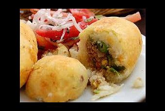 Paso 10:Dora la papa rellena por dos minutos en aceite bien caliente. Retira del fuego y coloca cada papa en papel absorbente.