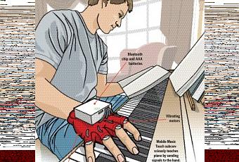 Este gadget o dispositivo utiliza la memoria muscular para que la persona memorice “inconscientemente” una secuencia de cómo mover sus dedos, a través de impulsos eléctricos enviados directamente a los nervios de su mano la persona estará repitiendo la secuencia de una canción de Piano por ejemplo.