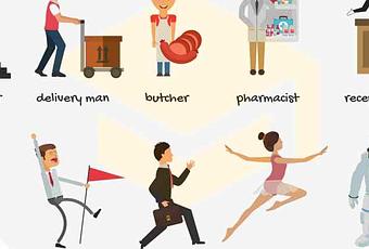 Una infografía sobre Aprende inglés: profesiones. Vía