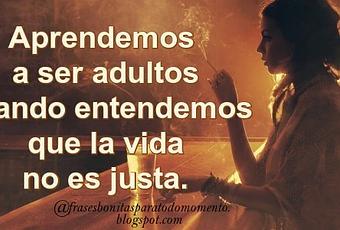 Una frase que nos hace pensar.Aprendemos a ser adultos cuando entendemos que la vida no es justa.