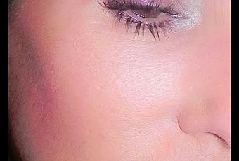 En mi caso, utilicé una sombra perla satinada en el lagrimal y la zona del arco ciliar cerca a éste, como podéis ver en la imagen superior. También está, aunque más difuminado, en el arco de la ceja. Es la sombra "Pretty in Paris" de la paleta de Sleek Vintage Romance.