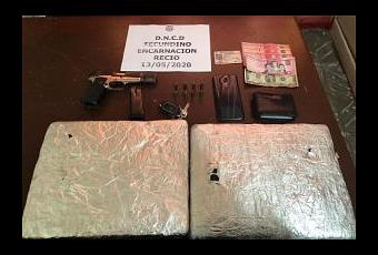 Además de los dos paquetes del vegetal verde, de 10 libras cada uno, también se le ocupo RD$3,200, una pistola marca Caranday, plateada con negro, calibre 9 milímetro, número 13527, con un cargador, sin documentos.