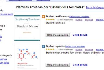 La sección "Estudiantes y Profesores" en la galería cuenta con una gran cantidad de plantillas útiles que se pueden utilizar en su clase con sus estudiantes. El complemento mencionado aquí arriba también provee plantillas de uso específico. Hay que navegar a través de la selección y allí cuando te encuentras con una plantilla que desea utilizar simplemente repite el procedimiento expuesto más arriba.Espero te sirvan estos datos.