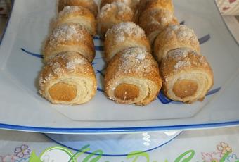 Si la cantidad de masa es suficiente, podemos hacer rollitos: colocando sobre la masa estirada jamón, queso, salchichas… Enrollar a lo largo y cortar porciones de 2-3 cm. aproximadamente. Pincelar con huevo batido, espolvorear sésamo tostado si se desea y hornear hasta que tenga un ligero color dorado. Palmeritas, tartaletas…..