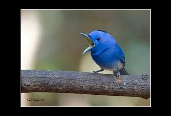 Imagen: ejemplar de monarca nuquinegro (Hypothymis azurea), ave paseriforme que bien pudiera pasar por modelo del icono de Twitter.