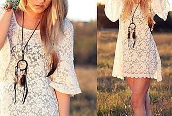 El crochet, se puso muy de moda en la década de los 90, dentro del estilo hippy que resurgió en aquella época. Dentro del estilo boho, es un material muy acertado. Lo puedes encontrar en tops, vestidos, chalecos o bikinis.