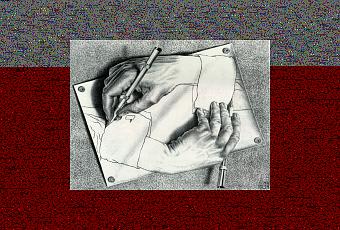 Sugestivo dibujo, como todos los de Escher, inmortalizando el inevitable momento en que se acaba la tinta.En Terapia Familiar se estudia a la clásica familia configurada en el siguiente esquema: